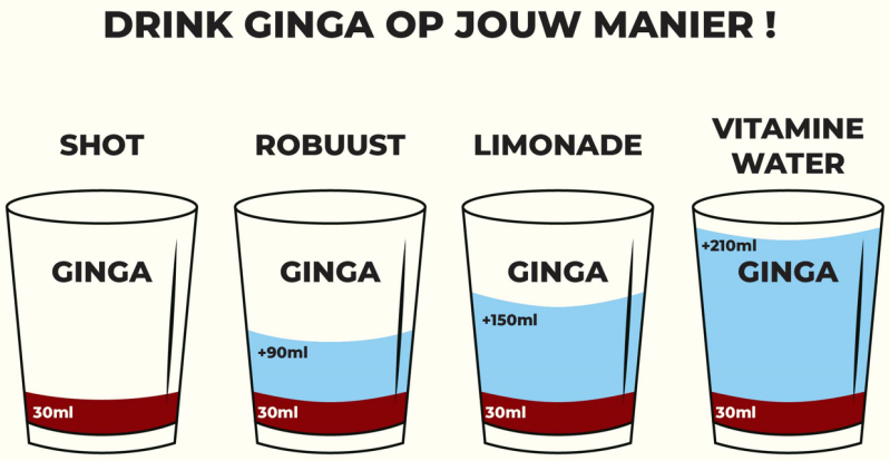 Boost je immuunsysteem door een shot te nemen in de ochtend of mix het met (bruisend of heet) water. GINGA is ook heerlijk in smoothies, mocktails of cocktails.
